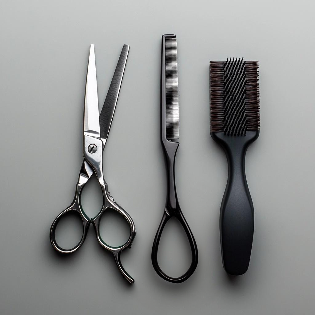 Forbici da parrucchiere, pettine e spazzola per capelli